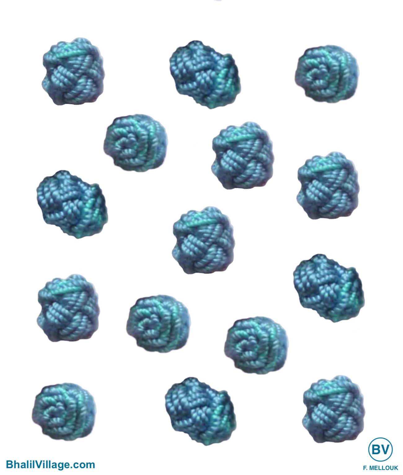 Ils sont fabriqués de façon manuelle et artisanale pour les vêtements traditionnels (Kaftans, Djellabahs...). La matière première se limite à 2 éléments : le fils de soie et le papier. L'instrument de travail principal est simple : une petite tige carrée d'environ 15 cm de long, pointue d'un côté mais plus large de l'autre. Accompagnée d'une aiguille à coudre de taille moyenne. Évidemment qu'il y a un savoir-faire artisanal qui nécessite un temps d'apprentissage plus ou moins long. Plus tard, on acquiert de la rapidité dans l'exécution, de la capacité dans l'innovation, etc... Le talent n'est bien sûr pas de refus ! Je ne savais pas que Sefrou, avec sa région (Bhalil, etc...) était considéré par le ministère du tourisme et de l'artisanat comme étant la capitale mondiale de la fabrication des boutons de soie ! (PDF : Boutons de soie). A Bhalil c'est une source de revenu pour beaucoup de familles et c'est un travail exclusivement féminin. A condition d'avoir un peu de temps en dehors des tâches habituelles (s'occuper de la maison, faire des études...). Certaines femmes sont bien sûr plus douées que d'autres et l'apprentissage pour les débutantes pouvait prendre de 2 à 3 ans. On ne commençait pas à apprendre tout de suite comment produire des boutons de soie. Il fallait d'abord faire quelques corvées ménagères désagréables. Comme on dit "commence par apporter le café et on verra après". Ensuite, on combine les corvées et l'apprentissage au compte-gouttes. Les secrets de fabrication n'étaient pas livrés comme ça, gratuitement à la première venue, et d'un seul coup. Généralement, les femmes ou les jeunes filles se retrouvaient ensemble l'après-midi quand il y avait moins de travail à la maison, au coin d'une rue pour commencer la production. C'est évidemment mieux quand il faisait beau. Parfois, il y avait des locaux dédiés pour se retrouver entre femmes et fabriquer des boutons. Comme pour aller au travail ! Ces locaux étaient tenus et dirigés par d'autres femmes qui jouaient le rôle de "managers". Elles imposaient des règles strictes, dont le seul objectif est de produire plus. Genre : "si tu parles, tu fabriques un bouton de soie pour les autres", etc... Mais, on y allait parce qu'on était moins dérangé qu'à la maison. Par contre, je ne pense pas que c'était gratuit. Les dames "managers" se faisaient probablement payées en boutons de soie pour service rendu. Il existe plusieurs modèles de boutons de soie qui peuvent être fabriqués à Bhalil. Certains modèles sont plus difficiles à produire, mais sont vendus plus chers. Alors que d'autres sont plus facile à produire mais rapportent moins. Toutes les femmes ne sont pas capables de produire tous les modèles. Les femmes les plus douées acquièrent vite une réputation, et leur travail est plus demandé. Comme pour n'importe quel artisan plus doué dans son métier. Ces femmes sont capables de reproduire des boutons "sur mesure" et sur commande à partir d'un modèle ou d'un exemplaire qu'elles n'avaient jamais vu auparavant. Je crois savoir qu'à Bhalil on fabrique plus les modèles appelés : "Mdabra", "Ssam", etc... Bref, la main d'oeuvre plus qualifiée et les modèles plus élaborés rapportent plus. La vente aux intermédiaires du village se fait à l'unité. Il est probablement difficile de devenir riche en produisant soi-même avec ses propres mains des boutons de soie. Par contre, on peut le devenir en faisant les intermédiaires entre les productrices et les clients qui se trouvent dans les grandes villes. Il faut donc avoir un réseau de récolte des boutons au sein du village. Un autre pour la distribution des boutons dans les grandes villes. Et encore un autre pour l'achat de la matière première (fil à soie) dans les grandes villes aussi. Les femmes de Bhalil sont de petites productrices locales qui alimentent le reste de la chaine. Mais, qui ne sont pas celles qui gagnent le plus dans cette affaire. Une meilleure organisation de ces femmes, en association ou en coopérative, pourra peut-être les aider à profiter au mieux de leur production. A l'image de ce qui se fait à Sefrou : Boutons de cerises.
