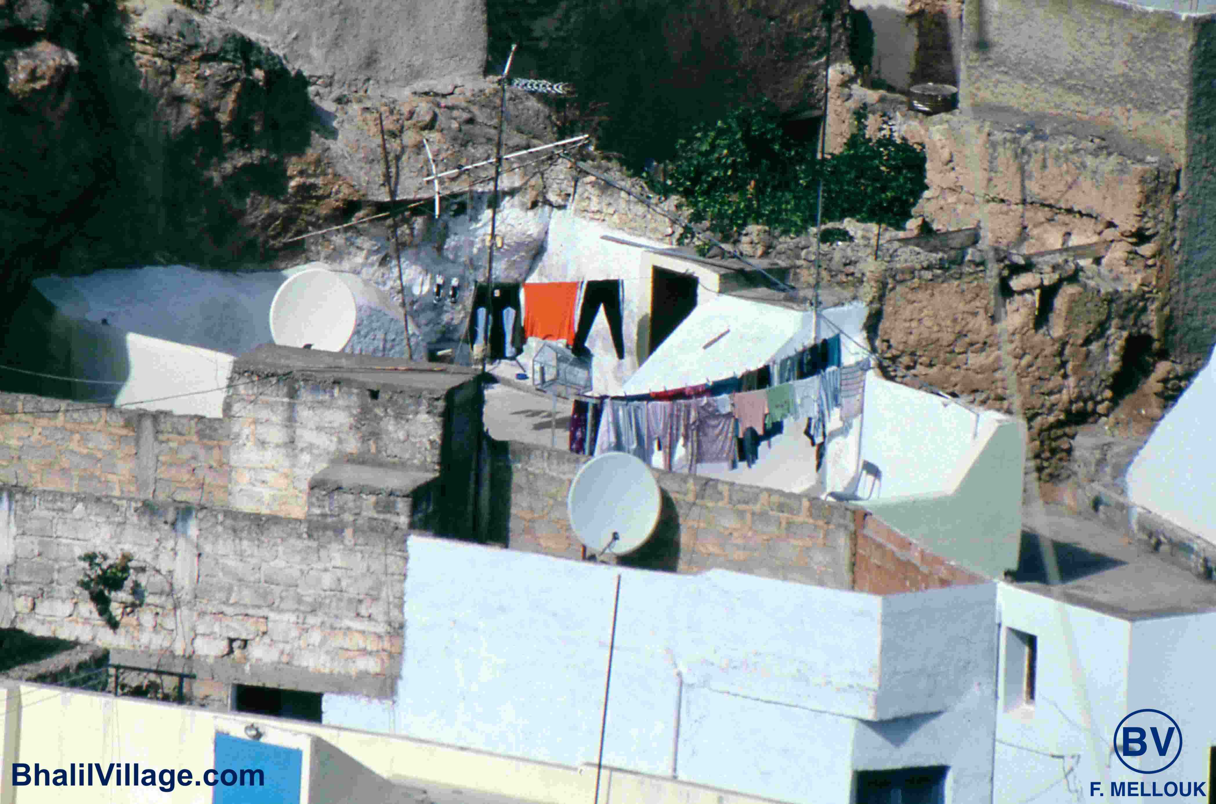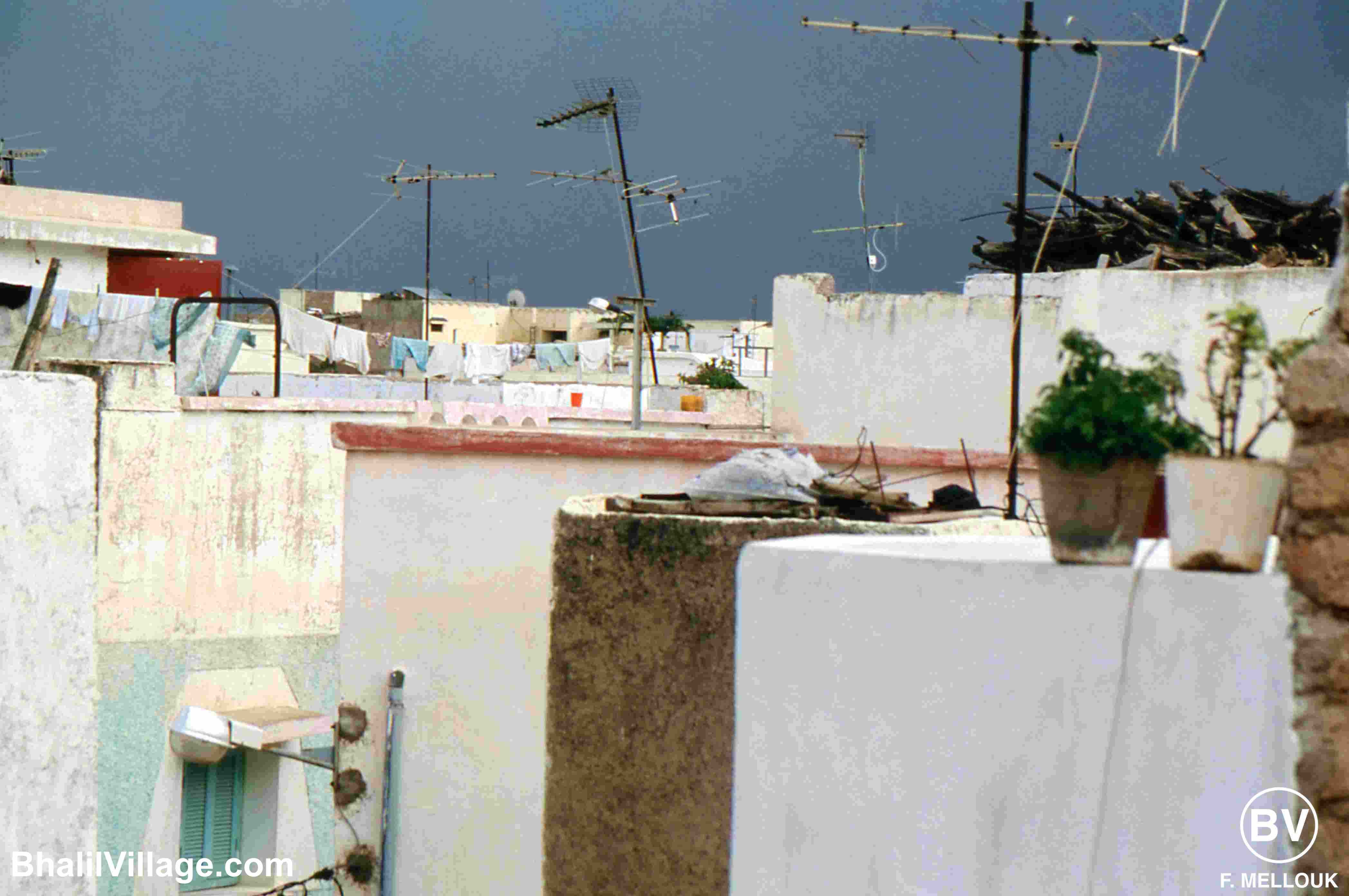 🔹 Sur les toits de Bhalil, la vue est "pittoresque" : les antennes et le linge sont omniprésents. De temps en temps , on voit également quelques pots de fortune avec des Géraniums...